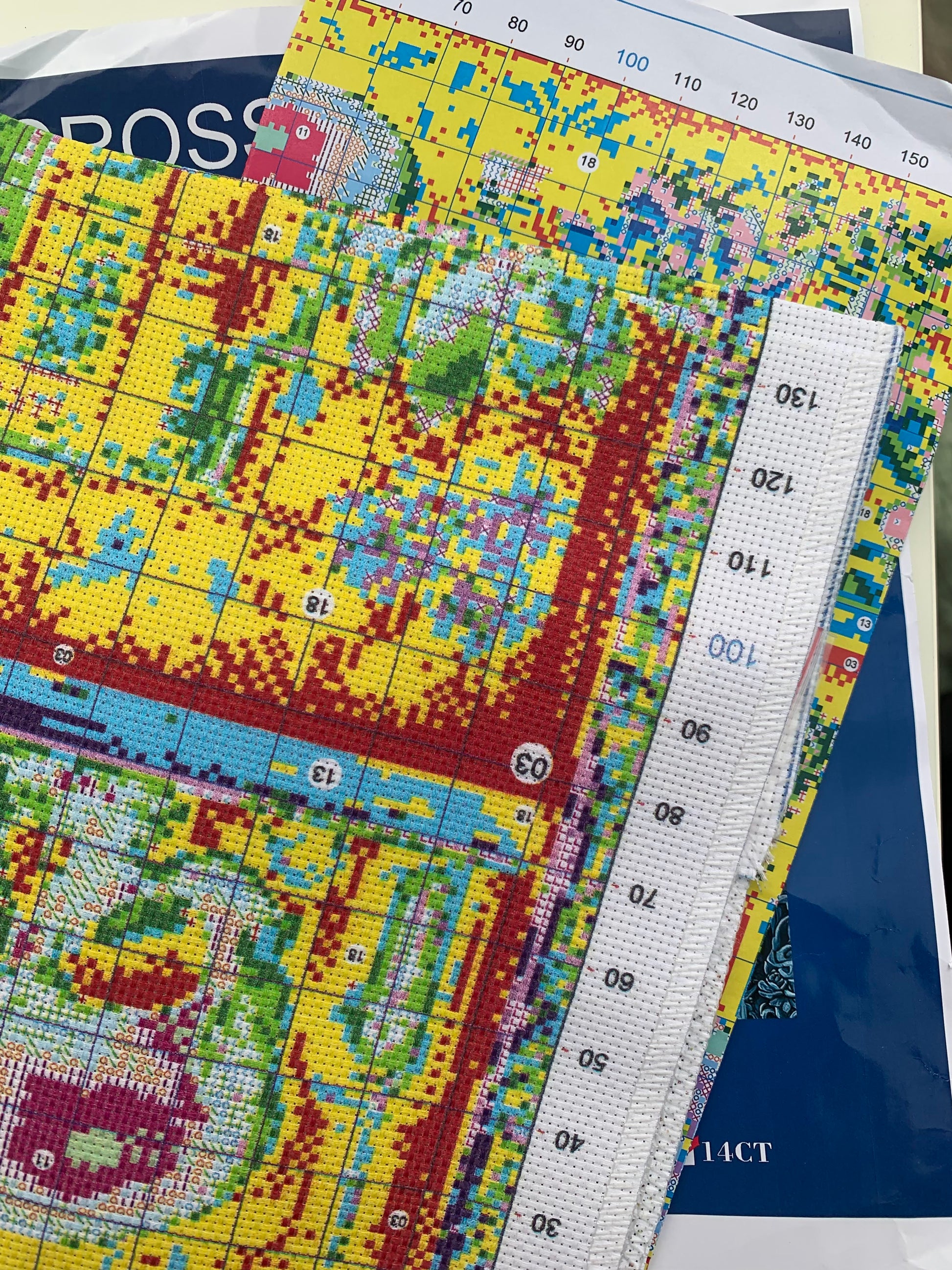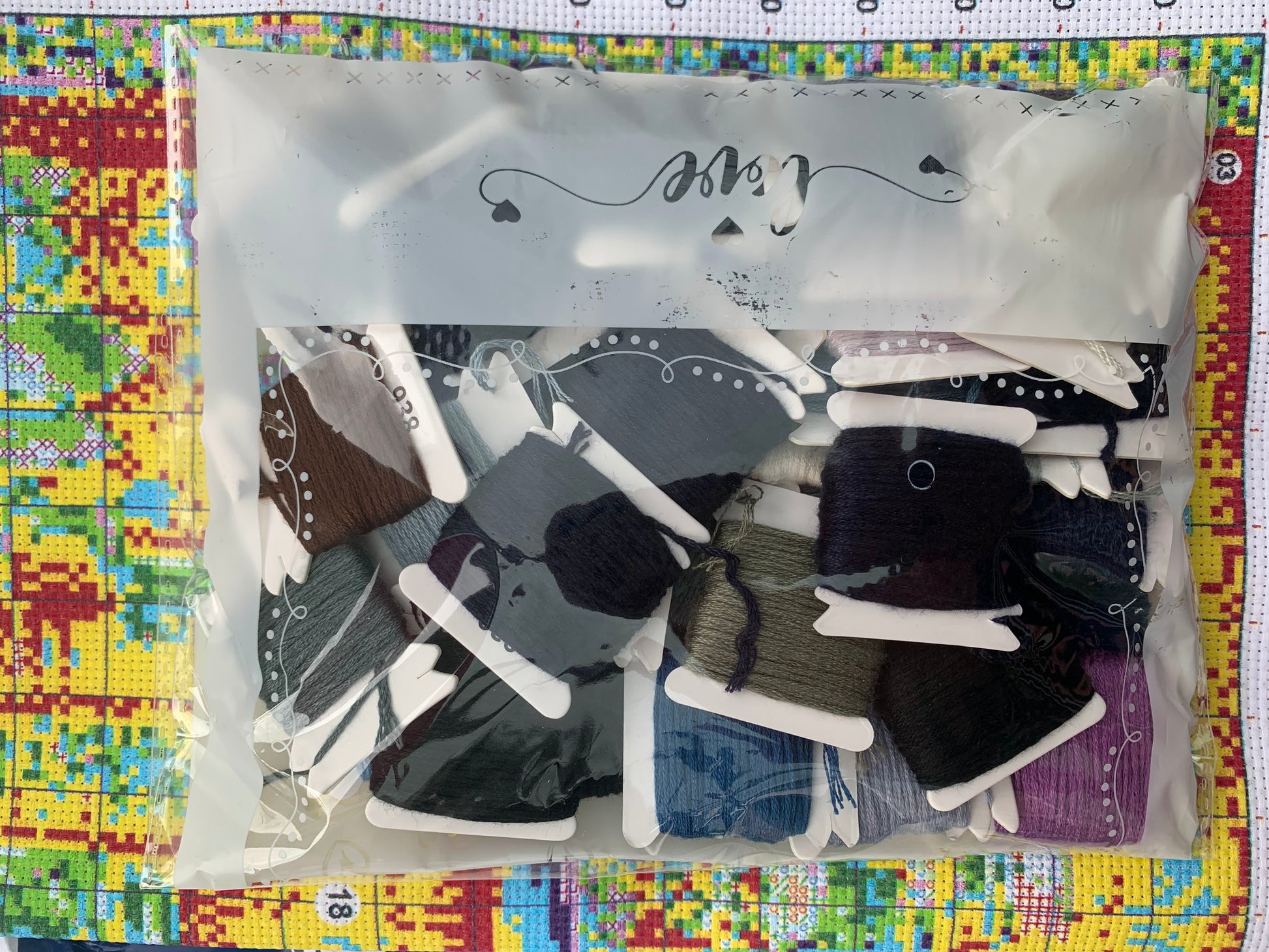 Beautiful cross stitch kit of a skull, flowers and vintage books on a bookcase. This kit includes all the floss needed, a needle, instructions and printed Aida. You can use the chart to help keep track but having the design printed on the canvas makes it so much easier to follow the pattern. The pattern on the fabric then washes out leaving your work ready to frame.